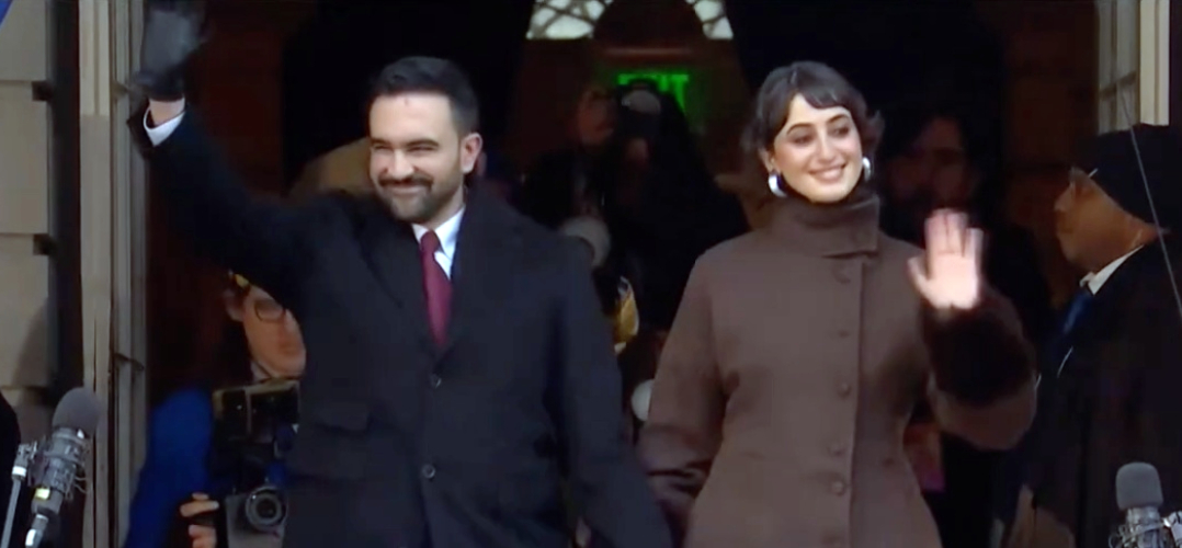 Zohran Mamdani bersama istrinya Rama Dwaji memasuki arena pelantikan dan angkat sumpah sebagai Wali Kota New York City | NYCmayoroffice