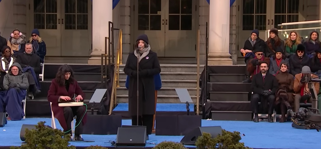 Kali kedua di hadapan ribuan khalayak ramai yang datang dari berbagai penjuru negara bagian New York, termasuk dari Queen. Ia mengucapkan lafal sumpah dipandu Senator Independen Amerika Serikat dari Vermont, Bernie Sanders yang terkenal kritis. Puisi dan Lagu dengan pesan khas terasa menjadi ‘ruh’ yang menggairahkan peristiwa pelantikan dan angkat sumpah di beranda Balai Kota New York, itu.